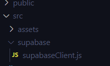 2. 진행중인 프로젝트 앱에 'supabase'폴더 - 'supabaseClient.js'을 생성한다.(가독성 & 유지보수를 위해)